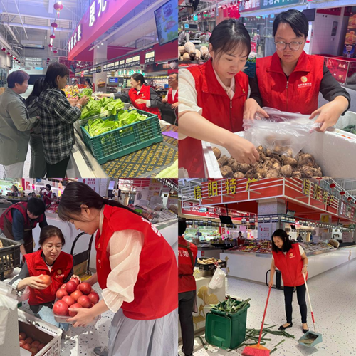 黨員志愿者分組前往市投集市丹楓路市場(chǎng)、未來路市場(chǎng)進(jìn)行志愿服務(wù)。在未來路市場(chǎng),志愿者協(xié)助檢查、清掃、整理市場(chǎng)衛(wèi)生和攤位,幫助商戶售賣菜品,維護(hù)農(nóng)貿(mào)市場(chǎng)整體秩序及衛(wèi)生環(huán)境。在丹楓路市場(chǎng),黨員志愿者一大早便來到市場(chǎng),協(xié)助市場(chǎng)早餐商戶為一線環(huán)衛(wèi)工人免費(fèi)派贈(zèng)“愛心早餐”,讓環(huán)衛(wèi)工人感受到了城市的溫度和市投集市的溫暖。隨后,黨員志愿者將市場(chǎng)內(nèi)外地面環(huán)境進(jìn)行全面清掃,擦洗攤位、墻面等,還對(duì)電動(dòng)車、共享單車停放區(qū)進(jìn)行了擺放整理,讓市場(chǎng)內(nèi)部環(huán)境煥然一新。提升了市場(chǎng)文明形象。